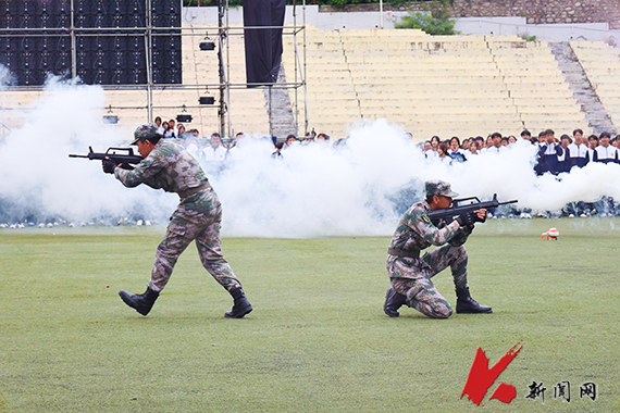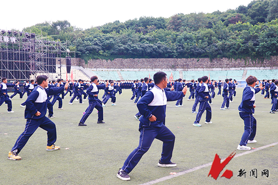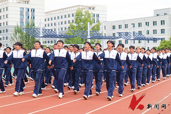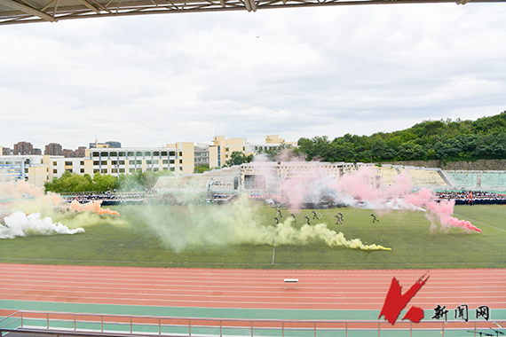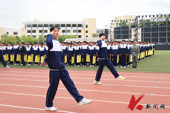 2025级新生军训闭营式在学校主体育场举行。校领导、军训团成员、新生辅导员和全体2025级新生参加闭营式。