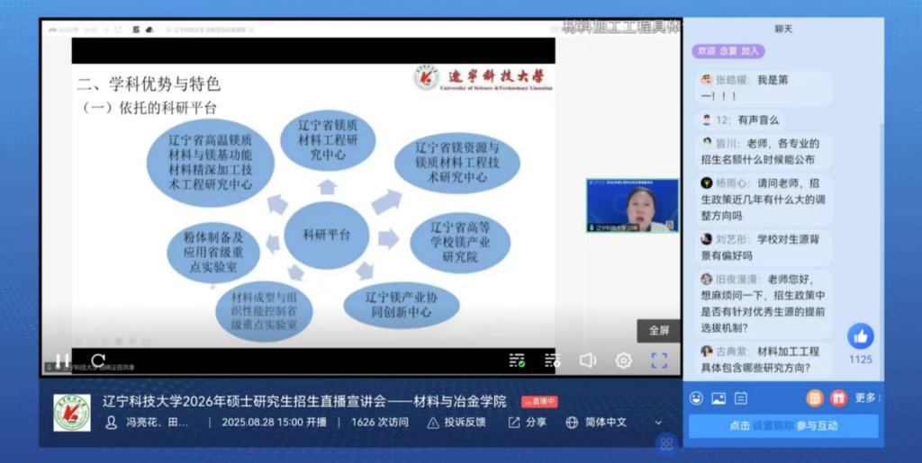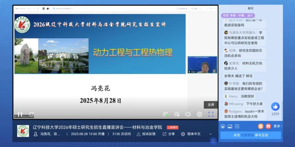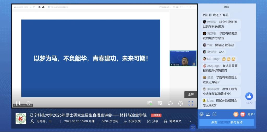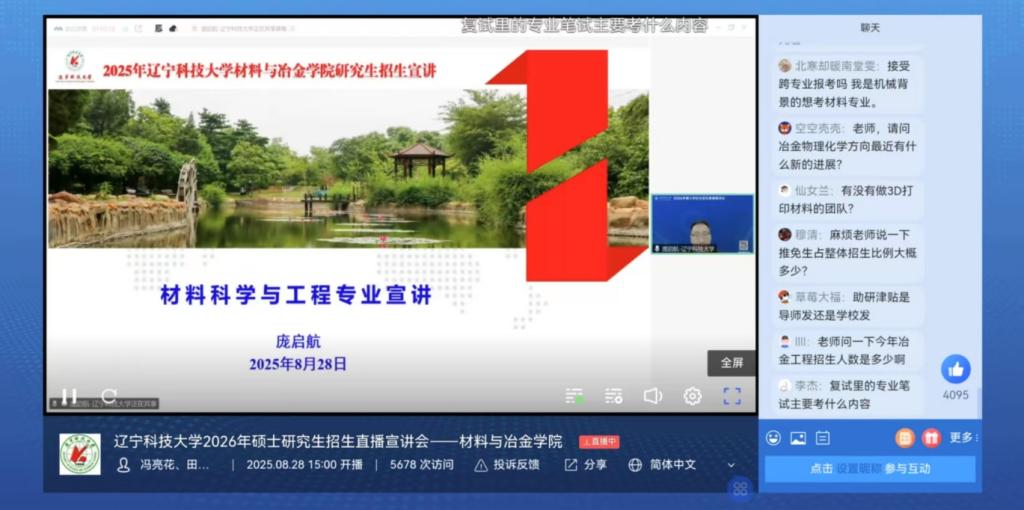 8月28日,火博手机版登录入口材料与冶金学院成功举办了2026年研究生招生线上直播宣讲会。本次宣讲会由学院副院长庞启航担任主持人。