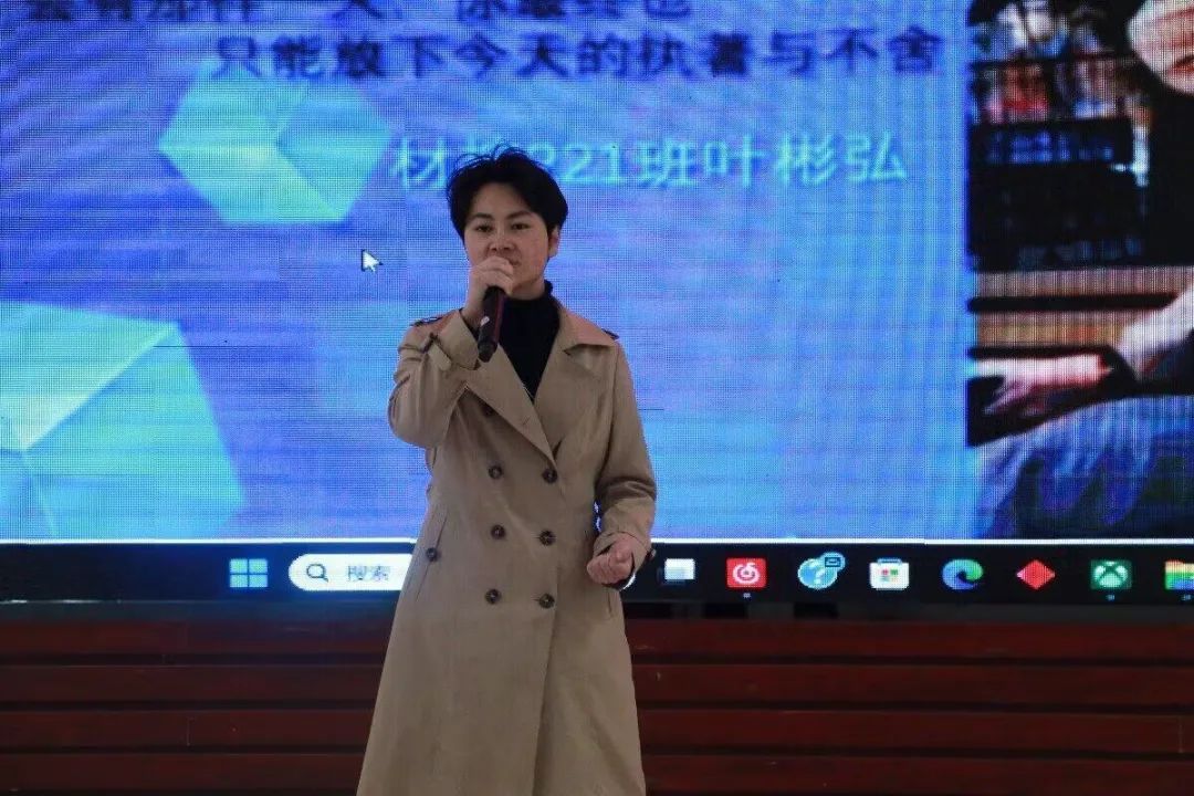 经过初赛的激烈角逐,最终有九组选手脱颖而出,他们将继续为大家呈现精彩的视听盛宴,争夺一二三等奖,去追寻他们的音乐梦想。第一轮比赛开场是材料233班季思颖带来《永不失联的爱》,歌声好似温柔晚风,丝丝缕缕萦绕耳旁,让我们的身边时时刻刻都充满爱;接着两位选手带来《某年某月某天》《沦陷》,让我们沦陷在歌声中,沉醉在回忆里。人生海海,在这看不透的人生里,我们每个人都在扮演着自己的角色。7号选手材控221班叶彬弘带来歌曲《突然好想你》,每一个音符仿若日出越过层层山峰,宛如月光扫过涓涓细流,表达心意,8号和9号选手分别带来《至少还有你》《那些你很冒险的梦》,展现青春风采。