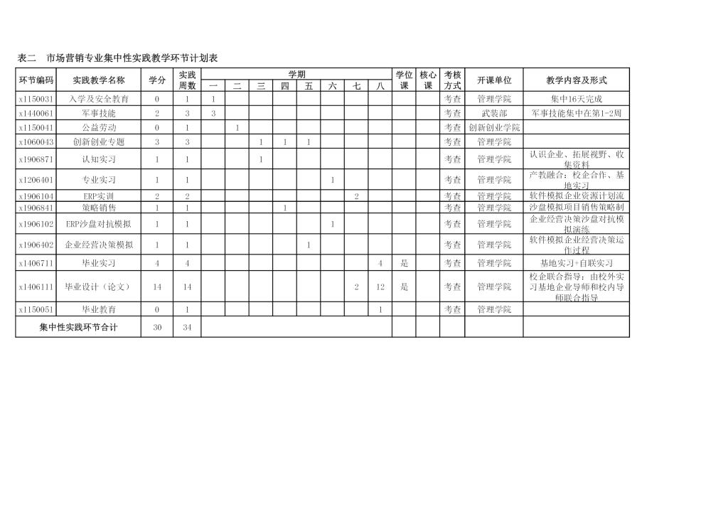 市场营销专业培养方案
