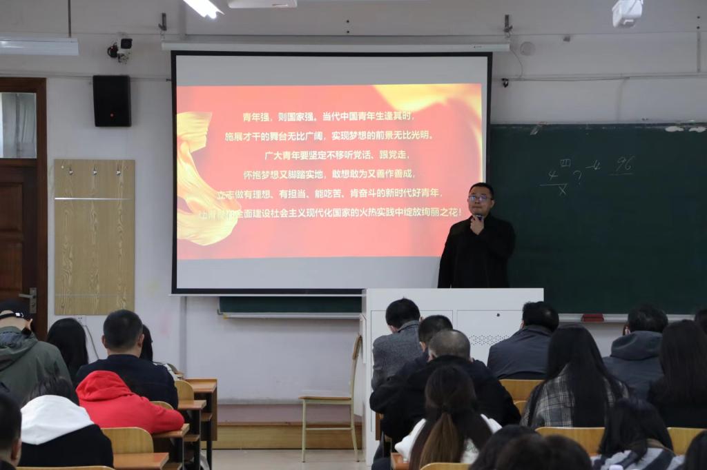 会议邀请经济与法律学院副院长温馨作题为《汇聚奋斗的共识与力量,切实推进高质量发展》的专题宣讲报告。温馨说,要汇聚共识、凝聚力量、推进发展,首先就要达成共识、理清脉络、明确任务。温馨为大家详细介绍了新时代新征程的历史沿革,深刻阐明了“新征程”的中心任务、总的战略安排以及未来五年的主要目标任务之间的层层关系,并引用习近平总书记在中共中央政治局组织生活会上的讲话,为大家阐明如何在开展工作中实现量变与质变的飞跃,深入推进高质量发展。