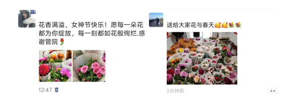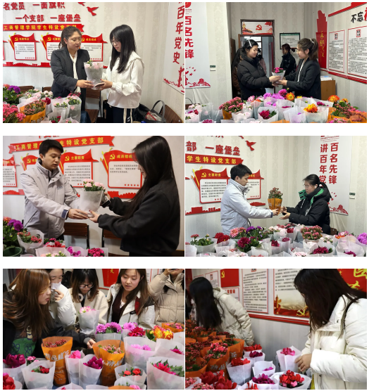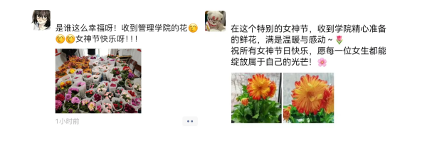 在女神节这个特别的节日里,老师们将鲜花送到每位女生的手上,愿她们明媚自信,向阳而生。那一朵朵芬芳的鲜花,传递的不仅是节日的祝福,更是学院对大家满满的关心。希望女生们在这一天能收获快乐,在未来的日子里,绽放属于自己的光彩。