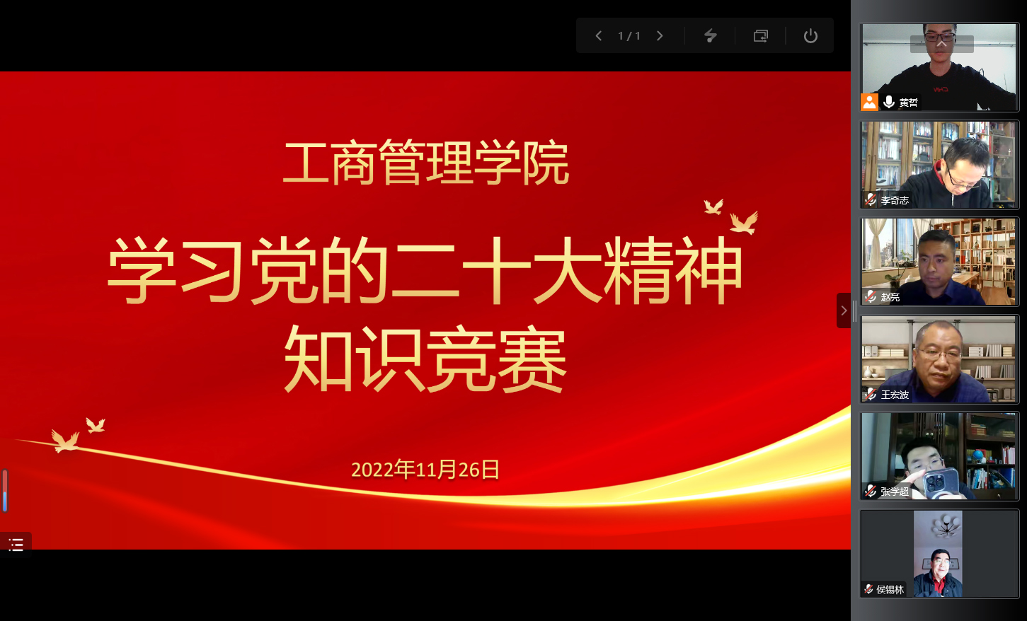 为认真贯彻落实《中共火博手机版登录入口委员会关于深入学习宣传贯彻党的二十大精神的方案》工作要求,促进学院师生深刻领会党的二十大提出的新思想新论断、作出的新部署新要求,管理学院于11月26日晚开展“以赛促学、以学促干”学习党的二十大精神知识竞赛活动。赛前学院党委书记董文武强调,师生们要以本次知识竞赛为契机,充分学习、认真答题,确保把学习贯彻党的二十大会议精神付诸于行动、见之于成效。