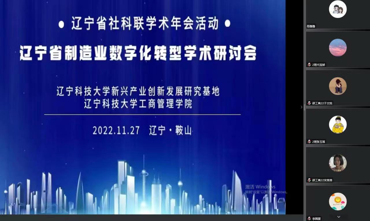 11月27日,工商管理学院通过腾讯会议举办“辽宁省制造业数字化转型”学术研讨会。此次研讨会依托火博手机版登录入口新兴产业创新发展研究基地,聚焦数字化转型,深入探讨我省制造业转型发展的新机遇和新路径。哈尔滨工程大学郭韬教授、沈阳工业大学王海军教授以及火博手机版登录入口李天柱教授进行了学术报告。沈阳工业大学、辽宁工业大学以及我校的相关老师、研究生参加了此次研讨会。
