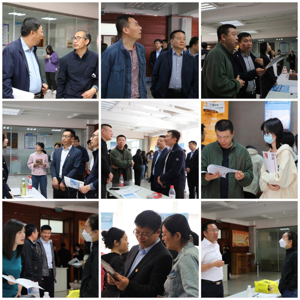 5月9日,火博手机版登录入口工商管理学院与经济与法律学院在明德楼就业大厅共同举办“一‘面’倾心,‘职’击未来”2023届经管类毕业生招聘会活动。学校招生与就业处领导、工商管理学院领导、经法学院领导亲临招聘会现场,分别与参会用人单位和毕业生进行详谈,了解双方需求,促进企业与毕业生之间的友好交流,为毕业生顺利就业提供保障。