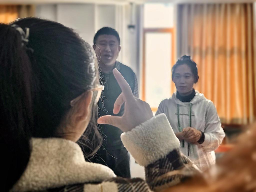 活动项目丰富多彩,同学们都乐于参与其中。活动中耳熟能详的小游戏“你来比划我来猜”颇受欢迎,看似简单的游戏,参与其中才能发觉同学们需要通过精准的表演来展现词语的含义,它更考验着团队之间的默契和协作能力。同学们搞笑的表达方式和默契的配合,让活动现场一度热烈澎湃。