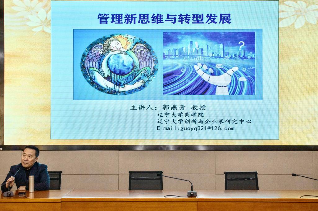 典礼结束,学院特邀辽宁大学商学院郭燕青教授为MBA学员作“管理新思维与转型发展”专题学术报告。