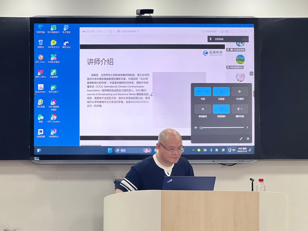 徐敬宏教授以“AI大模型辅助文献检索与核心期刊论文写作示例”为主题,系统阐释了人工智能在科研全流程中的应用价值。他从文献精准检索、论文框架搭建、课题申报书撰写等关键环节入手,结合国内主流AI大模型的操作演示,生动展示了技术工具如何高效赋能学术研究。徐教授特别强调,尽管国内AI大模型在提升科研效率与教学质量方面成效显著,但始终是辅助工具,不能替代研究者的独立思考,使用过程中需严格甄别信息真实性,坚守学术诚信底线。