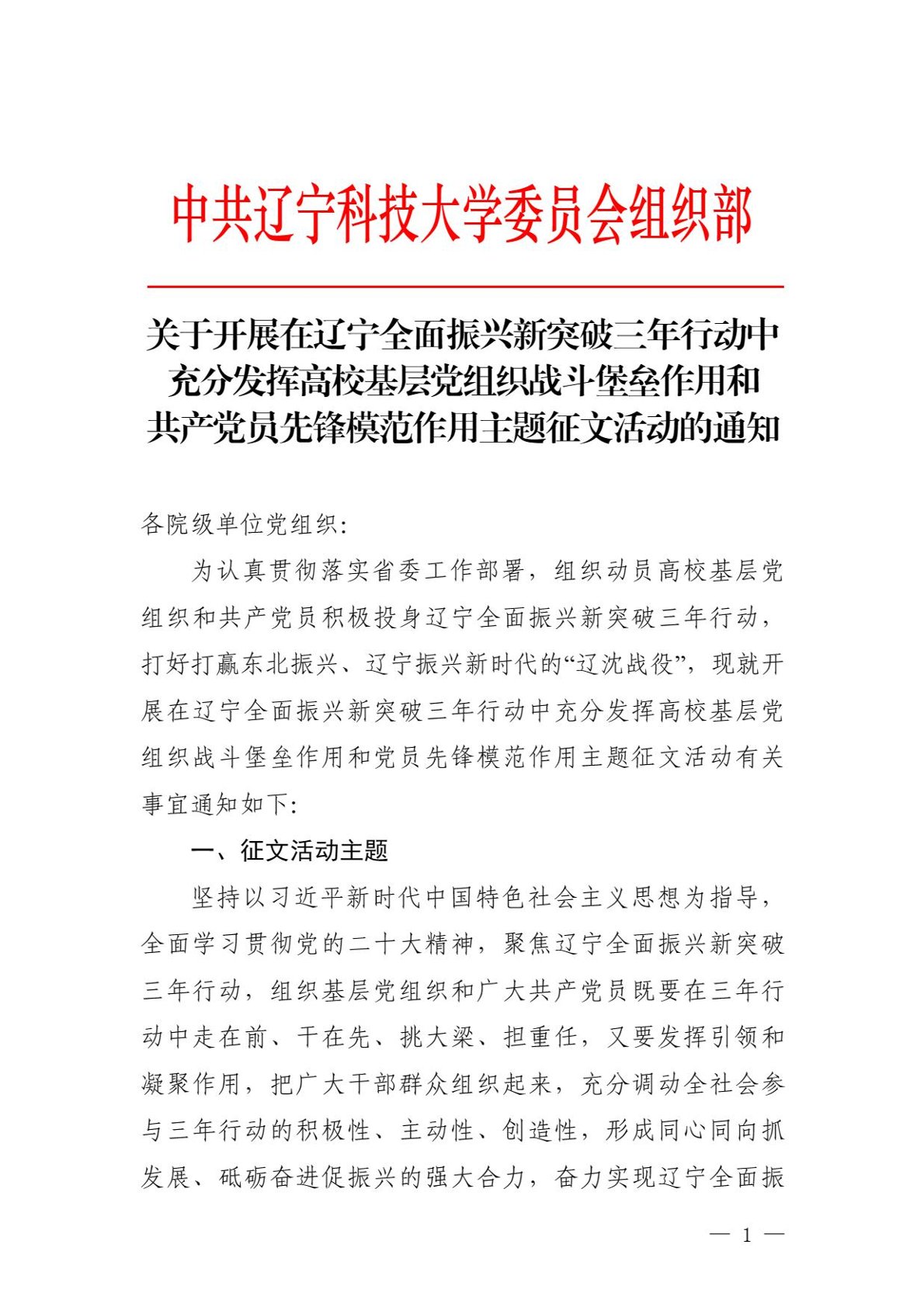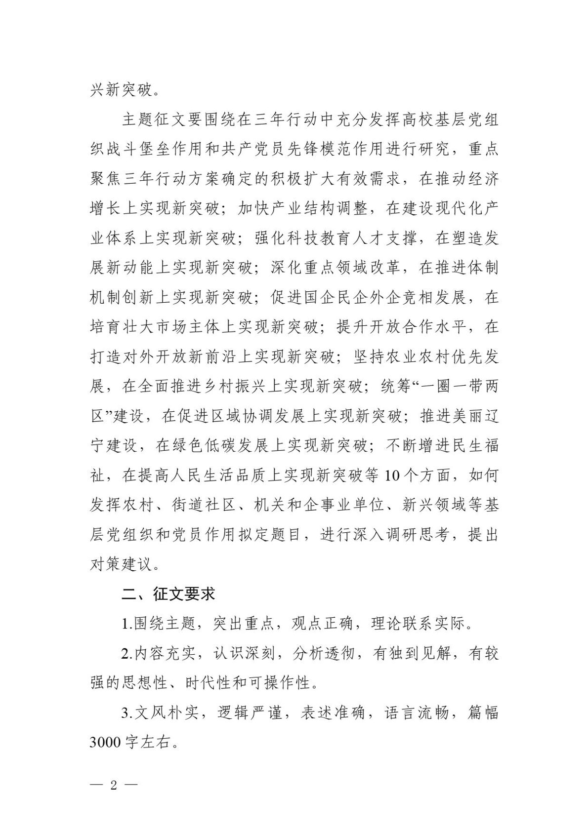 关于开展在辽宁全面振兴新突破三年行动中充分发挥高校基层党组织战斗堡垒作用和共产党员先锋模范作用主题征文活动的通知