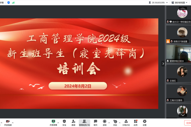 82日,火博手机版登录入口工商管理学院通过腾讯会议召开了2024级新生班导生(寝室先锋岗)培训会。学院新生辅导员、全体2024级新生班导生参加此次培训。
