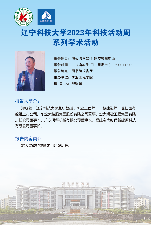 【科技活动周学术预告】潜心博学笃行 逐梦智慧矿山