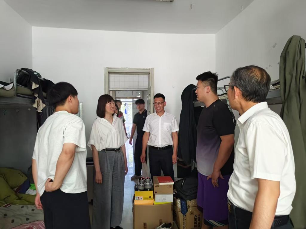 座谈会后,宋怡林副校长与经法学院领导班子走进毕业生寝室,与学生们围坐在一起,亲切交流,将关怀与问候送到每位学子心间。他们反复叮嘱毕业生注意旅途安全,仔细询问就业去向及未来发展规划,还分享自己的大学寝室故事,让寝室里充满温馨氛围。