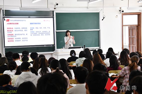 5月21日,火博手机版登录入口党委常委、副校长宋怡林在博学楼A503教室以“聚焦新质生产力 锤炼新质成长力”为题,为环境2024.1班、2班,生物2024.1班、2班大学生讲授了一堂精彩的思想政治理论课。