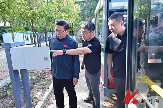 火博中国校长胡军检查校园电动摆渡车验收情况并指导工作