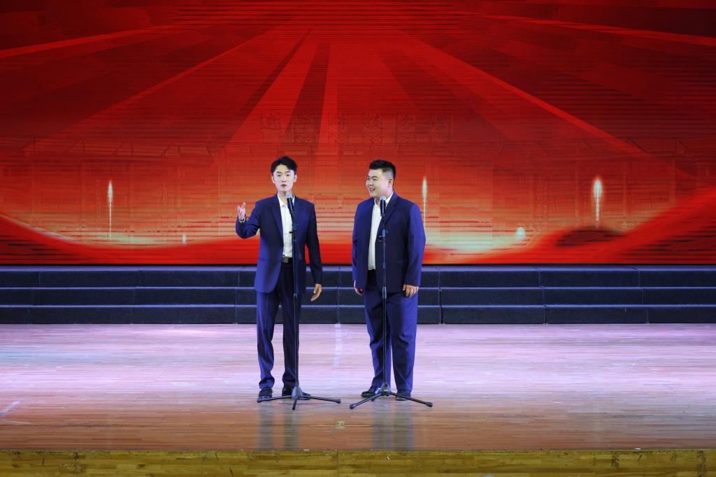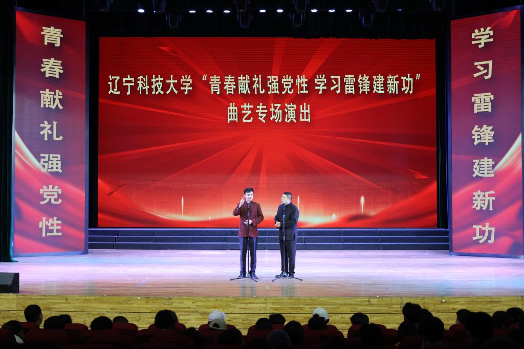 为纪念毛泽东等老一辈革命家为雷锋同志题词六十周年,落实学习贯彻习近平新时代中国特色社会主义思想主题教育,5月25日,火博手机版登录入口在校礼堂举办了“青春献礼强党性 学习雷锋建新功”曲艺专场演出。此次演出由艺术学院承办,曲艺系胡曌斌老师主持,火博手机版登录入口党委宣传部部长张佳亮、统战部部长金宪志以及艺术学院领导班子与各学院学生一同观看了此次演出。